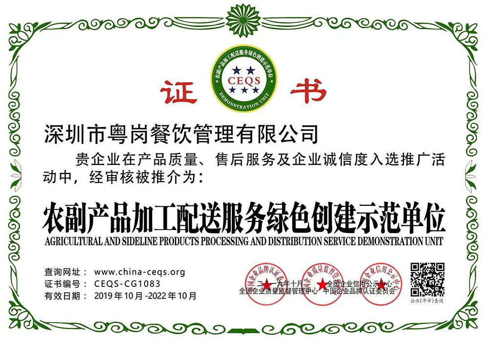 深圳市粵崗餐飲管理有限公司,是一家集蔬菜種植和農(nóng)副產(chǎn)品配送為一體的專業(yè)型餐飲公司,主要為學(xué)校、工廠企事業(yè)機(jī)關(guān)單位提供蔬菜和農(nóng)副產(chǎn)品配送服務(wù)。公司自成立以來始終以質(zhì)優(yōu)價(jià)廉、服務(wù)至上為原則,嚴(yán)格按照ISO:9001國際標(biāo)準(zhǔn)體系進(jìn)行管理。同時(shí)建立了行業(yè)領(lǐng)先的配送中心、大型冷庫和保鮮庫、檢測中心以及專業(yè)化的配送團(tuán)隊(duì),能長期安全、穩(wěn)定、準(zhǔn)時(shí)的配送貨物。我們所有蔬菜均經(jīng)過初步加工、無黃葉,無泥沙等雜質(zhì),利用率達(dá)97%以上...保障向用戶提供的各類食材的衛(wèi)生和質(zhì)量。公司為了適應(yīng)不同客戶的需求,配有專業(yè)人員和配送車輛,實(shí)行“一對一”的服務(wù)體制,一心一意的為客戶服務(wù),秉承粵崗誠實(shí)守信、服務(wù)第一、客戶至上的服務(wù)標(biāo)準(zhǔn),真正讓客戶花最少的錢吃最好的菜。粵崗多年來何以欣欣向榮,因?yàn)槲覀冎乐挥杏掠趽?dān)當(dāng)責(zé)任,才能承擔(dān)更大的責(zé)任,就是因?yàn)?粵崗員工貫徹公司態(tài)度決定一切、細(xì)節(jié)決定成敗的真理,從質(zhì)量抓起,從服務(wù)做起,才創(chuàng)造了如今的規(guī)模化供應(yīng)、統(tǒng)一性配送、專業(yè)化服務(wù)的粵崗。